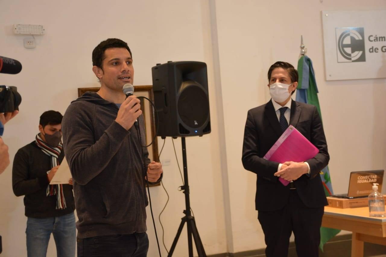 Hoy por la mañana, en el salón de la Cámara Empresaria de nuestra localidad, el Intendente Mauro García y el ministro de Educación de la Nación, Nicolás Trotta, encabezaron el acto de entrega de netbooks a estudiantes del nivel secundario, en el marco del programa nacional “Conectar Igualdad”.