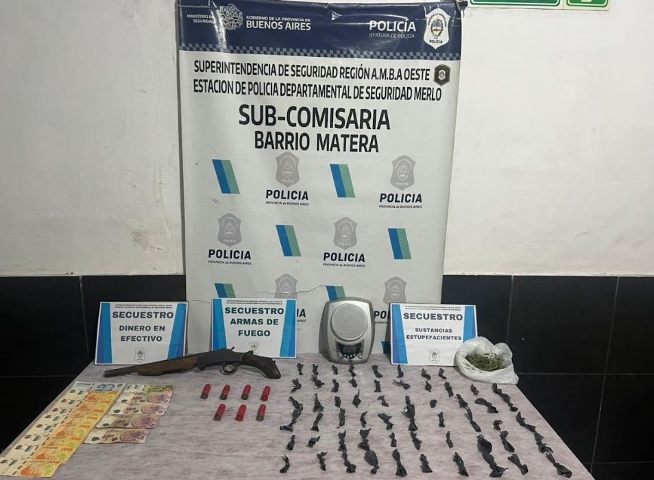 Personal policial de la Subcomisaría Barrio Matera logró desarticular un punto de venta de drogas y detener a tres personas, que estaban armadas, en un operativo realizado en Barrio Rivadavia, en el partido de Merlo. El procedimiento fue llevado a cabo por el Gabinete Técnico Operativo (GTO) de la Subcomisaría, en conjunto con Personal de P.P.C. y Motorizada del Municipio de Merlo, en el marco de un Operativo de Seguridad Estratégica, destinado a prevenir ilícitos en la zona.