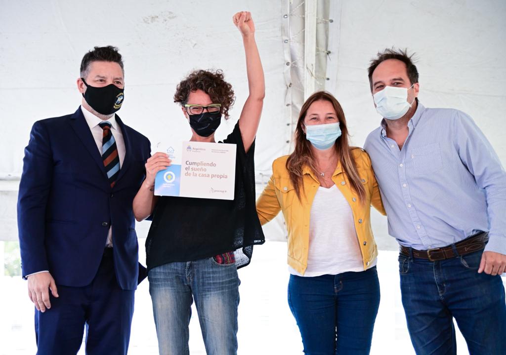 Con la presencia de Secretario de Hábitat de la Nación Santiago Maggiotti, el Intendente de Merlo en uso de licencia Gustavo Menéndez y la Intendenta Interina Karina Menéndez se realizó la primera entrega de viviendas Plan ProcreAR II y créditos del Plan Casa Propia del 2022.